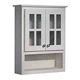 COJ-249 Features: -Over the toilet cabinet. -Cape Cod Series collection. -White finish. -Solid maple doors. -Two mullion doors for easy access and open shelf for extra storage. -Shaker flat panel style and showcase. -Full overlay and six way adjustable concealed hinge are built to last. -Glue chip glass. -Custom designed packaging for secure shipment to your home. -Made in USA. -Overall dimensions: 30.75'' H x 25.5'' W x 6.875'' D.